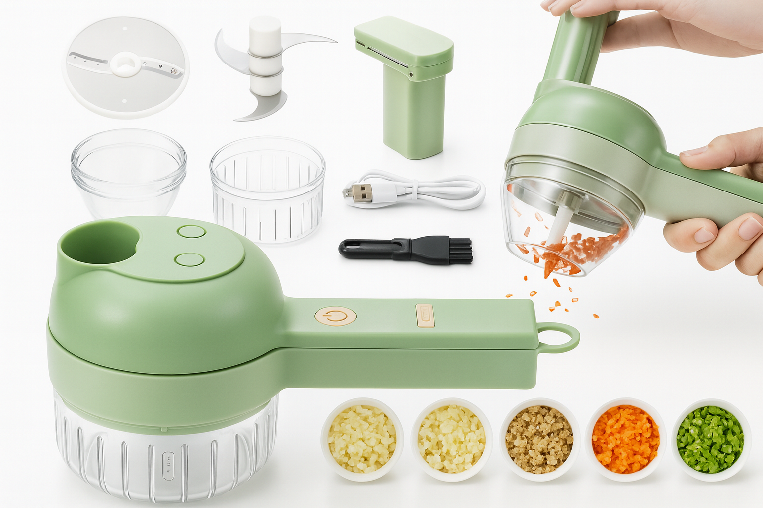 No importa si son ingredientes duros, blandos, grandes o pequeños: este cortador eléctrico está diseñado para hacerlo TODO. Desde picar ajo hasta cortar manzanas, pepino, cebolla, pimiento, fresas o apio… ¡lo procesa en segundos y sin esfuerzo!